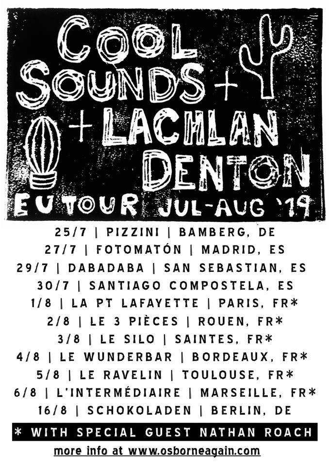 Tampoco podemos olvidarnos del acompañante de lujo que traerán Cool Sounds en su gira, ya que Lachlan Denton se encargará de abrir los conciertos de la gira, pudiendo disfrutar de este modo de Two Months in Ben Woolley's Room, un disco publicado en 2018 a través de Bobo Integral Records. A través de sus canciones nos encontramos con ese espíritu rebajado de los Teenage Fanclub más nostálgicos, pudiendo identificar como cada canción supone una historia extraordinaria entorno a vivencias de lo más comunes. Os dejamos con las fechas de la gira y nuestra recomendación de que no os la perdáis.