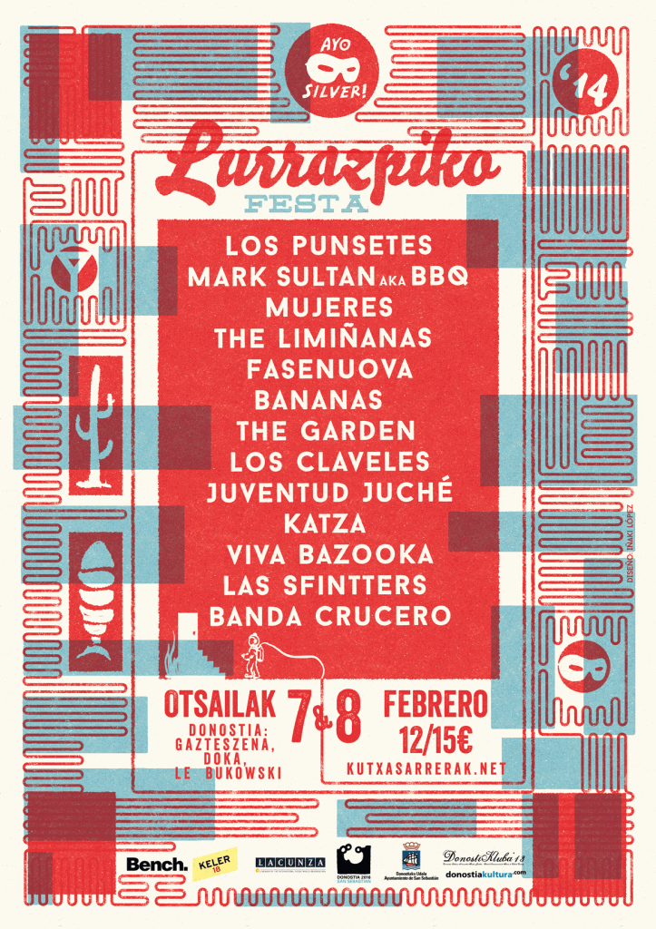 Al igual que el año pasado, llega su evento cumbre, el Lurrazpiko Festa cargada de grupos que nos motivan un montón. Desde el rock garagero y desenfrenado de Mujeres (aún seguimos recordando su conciertazo en Pucela), hasta el insultante descaro de Juventud Juché, claramente la revelación nacional del año. Tampoco nos podemos olvidar de nuestros venerados Los Claveles y su propuesta castiza que tanto amamos. El punto internacional lo pondrán The Limiñanas y su magnetismo, The Garden y sus píldoras punk y otro gran descubrimiento como Mark Sultan aka BBQ y su rock destartalado. Un evento que congregará hasta 13 bandas los días 7 y 8 de febrero en Donosti.