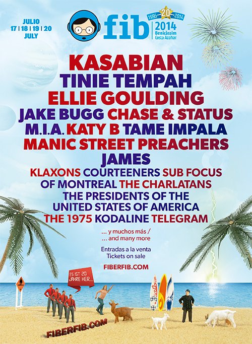 Este año el FIB cumple su 20 aniversario, y por eso nos ha extrañado tanto que no confirmara ningún nombre hasta ayer mismo. Así pues, ayer el festival de Benicássim anunció las primeras confirmaciones de su cartel, y la verdad es que seguramente no eran las que muchos esperaban. Aunque algunos artistas hacen que este cartel parezca irresistible, como por ejemplo M.I.A, Tame Impala, Jake Bugg o Kasabian, otros simplemente sorprenden y confunden como por ejemplo Ellie Goulding, Tinie Tempah o Katy B. Por suerte aún queda parte del cartel por descubrir, esperemos que no tarden mucho en desevelar más nombres, ya que a partir de hoy el abono se venderá por 149€ y próximamente suponemos subirá su precio un poco más.