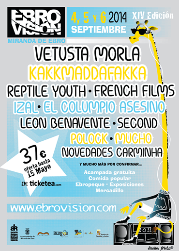El festival que tendrá lugar en Miranda de Ebro los días 4, 5 y 6 de septiembre como siempre en el Pabellón Multifuncional de Bayas y otros lugares emblemáticos de Miranda, ha dado a conocer hoy nuevos artistas a su cartel. En esta ocasión los confirmados han sido los gallegos Novedades Carminha con su flamante nuevo trabajo, Vetusta Morla inmersos de lleno en la gira de presentación de la Deriva, El Columpio Asesino son su trabajo más arriesgado y Reptile Youth que no se quieren perder ninguna cita festivalera este verano. Cuatro nuevos nombres que conforman un buen cartel en el que destacan grupos como French Films. Os recordamos que las entradas están a la venta a un precio de 37€ hasta el 15 de mayo. Si estás dudando en ir, nosotros te animamos.