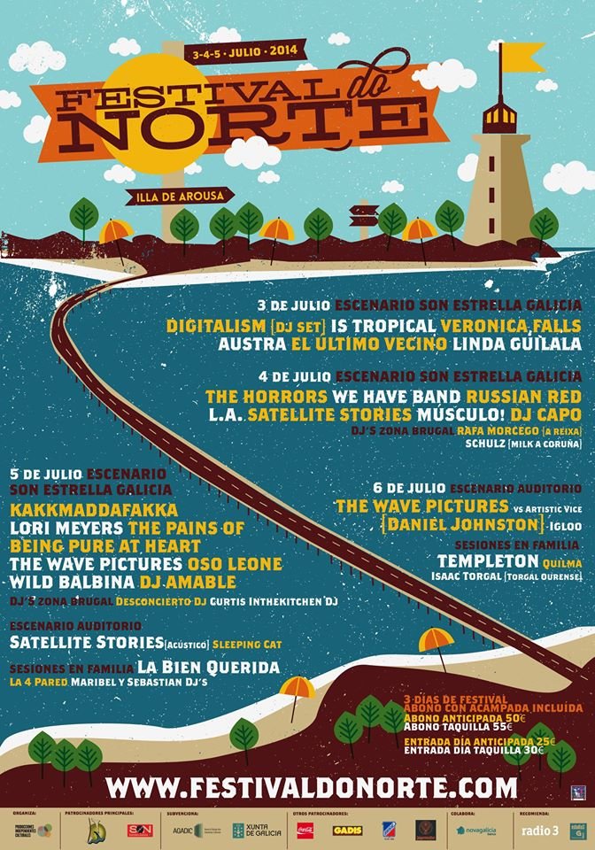 El gallego Festival Do Norte que este año ha cambiado su ubicación, ha logrado completar un enorme cartel para esta nueva edición. Si hace algunas semanas os avisamos de la presencia de gente tan importante como The Horrors, Austra o The Pains of Being Pure At Heart, ayer conocimos los último artistas en incorporarse al cartel. Desde el pop mediterráneo de Oso Leone hasta los vigueses Wild Balbina con su flamante nuevo disco bajo el brazo, sin olvidarnos de la fiesta de We Have Band. Del mismo modo, la organización también ha desvelado nuevos escenarios como es el caso del auditorio en el que el domingo The Wave Pictures revisarán a Daniel Johnston. Sin lugar a dudas, un enorme esfuerzo por reunir los días 3, 4, 5 y 6 de julio en Illa de Arousa a un gran elenco de artistas de calidad. Os dejamos con el link de venta de entradas.