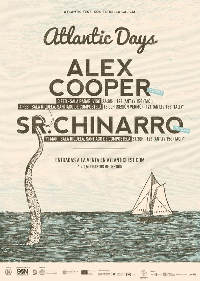 Al igual que ocurriese el año pasado en su primera edición, el Atlantic Fest contará con conciertos previos los meses antes de su celebración. De este modo, el festival no solo se limitará los días 30 de junio, 1 y 2 de julio en Illa de Arousa, sino que también llegará a otros puntos de Galicia meses antes con diversas actuaciones. Los dos primeros protagonistas de estos Atlantic Days será dos ilustres del panorama nacional como son Álex Cooper y Sr. Chinarro. Voces que representan generaciones y tipos de canciones muy diferentes, pero que servirán como la lanzadera a todo lo que dará de sí el Atlantic Fest, que de momento ya cuenta con The Temper Trap en su cartel. Os dejamos con toda la información.