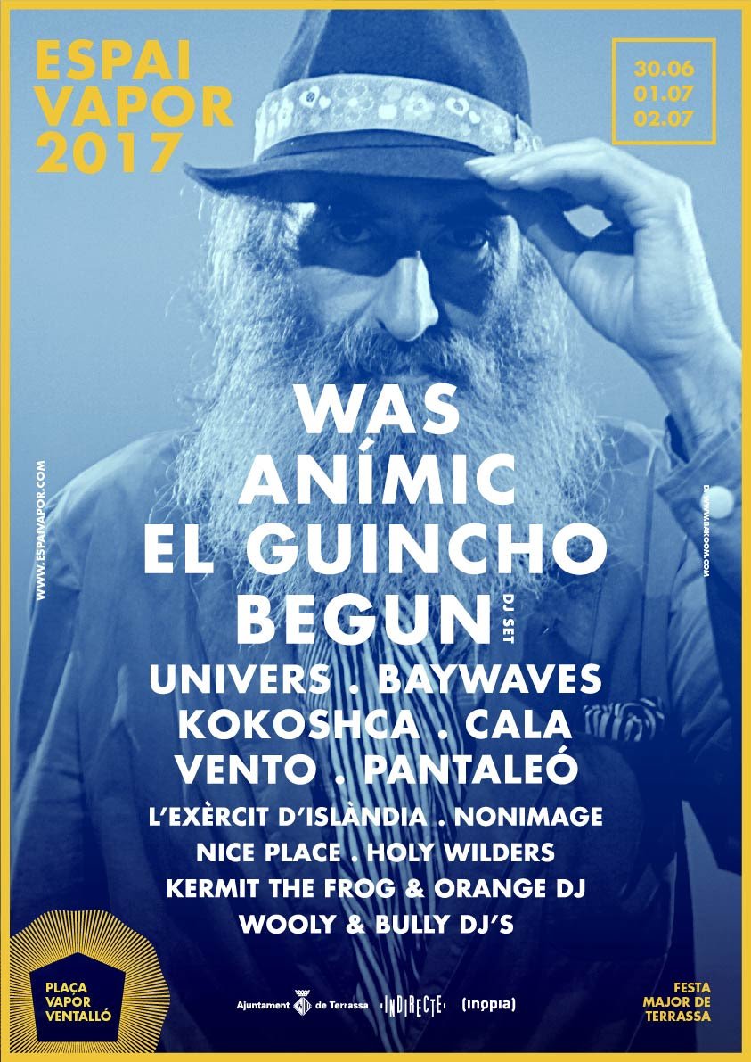 Regresa Espai Vapor, el festival de carácter gratuito que marca el pleno inicio del verano en Terrassa, dejándonos como siempre con un cartel que aglutina propuestas de lo más variadas, interesantes y fuera del circuito festivalero medio. Este año los grandes protagonistas serán El Guincho presentando Hiperasia, unos Anímic al frente de unos sonidos sintéticos con su punto de oscuridad, Cala Vento dejando atrás la etiqueta revelación o unos Univers que siempre viven aferrados a las melodías cargadas de extraña euforia. Lo dicho, una cartel atrevido e inmejorable que esperamos disfrutarlo al máximo. Os dejamos con todos los artistas confirmados.