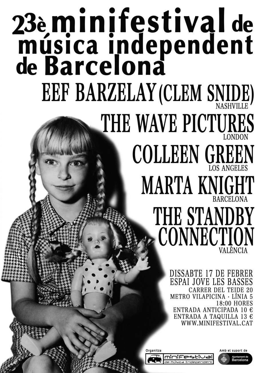 El Minifestival se mantiene al frente de los circuitos invernales más longevos del país, encontrándonos con que el próximo 2018 cumplirá ni más ni menos que su vigésimo tercera edición. Girando siempre entorno al concepto de canciones pop, muy bien llevada a través de otros géneros, el evento barcelonés siempre apuesta por un cartel que huye de las propuestas masivas y los nombres más que vistos. Por ello, esta nueva edición no iba a ser menos, contando con algún que ilustre y otros que no lo son tanto. En el apartado que hemos mencionado de ilustres tenemos que destacar a los siempre entrañables británicos The Wave Pictures, quienes competirán por la particular vitola de veteranos junto a Eef Barzelay, también conocido por sus composiciones bajo el nombre de Clem Snide. Los primeros ofrecerán sus canciones cada vez más repletas de guitarras extenuadas en riffs brillantes, mientras que el segundo hará gala de una canción más apegada a la calidez de la americana. Más sorpresas de lo más agradables llegarán con Colleen Green, la artista norteamericana que con su segundo LP I Want to Grow Up ha mostrado su confirmación en los terrenos del pop más soleado y llevado hacia la apacibilidad del surf. El cartel de esta edición se redondea con dos propuestas nacionales más que prometedoras como son la barcelonesa Marta Knight y sus composiciones de carácter acústico, junto con los Standby Connection que emulan al pop de los clásicos. Os dejamos con toda la información relativa al evento.