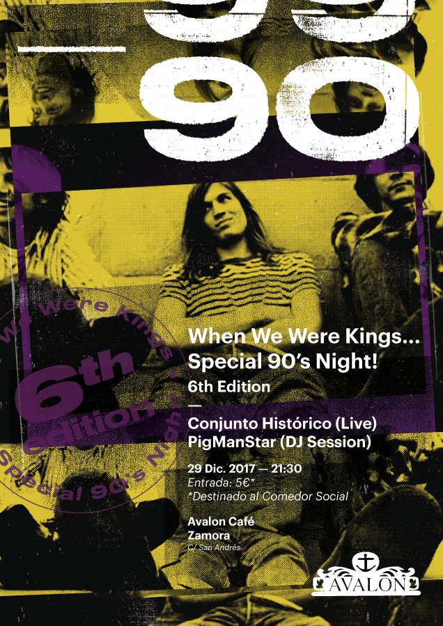 Seguramente la mejor parte de las celebraciones navideñas sea el reencuentro con los amigos, algo que en Zamora llevan unos cuantos sabiendo hacer a la perfección en fechas navideñas. Así es como desde hace seis años, tiene lugar la celebración de When We Were Kings... Special 90's Night!, una noche donde se reivindica una década de gran actividad en los locales de la ciudad, contando además con sus protagonistas originales para revivir de la mejor forma posible aquellos años. Debido a ello, el próximo viernes 29 de diciembre a partir de las 21.30 h, el céntrico café Avalón acogerá unas cuantas propuestas de lo más apetecibles, contando con el acto central el directo de Conjunto Histórico, una formación que repasará grandes hits de los noventa, encontrándonos entre sus filas a miembros de El Lado Oscuro de la Broca, LittleBoca, Mendel, Baxtards, Remembering The Doors, Yo y Peter Pan o Huckelberry. La veladada continuará su transcurso y se cerrará con la pinchada de todo un clásico como es el periodista musical Raúl Julián que a los platos toma el ya conocido nombre de PigManStar. Os dejamos con el cartel de un evento donde el presente y la nostalgia de aquellos años se combinan de la forma más bonita posible.