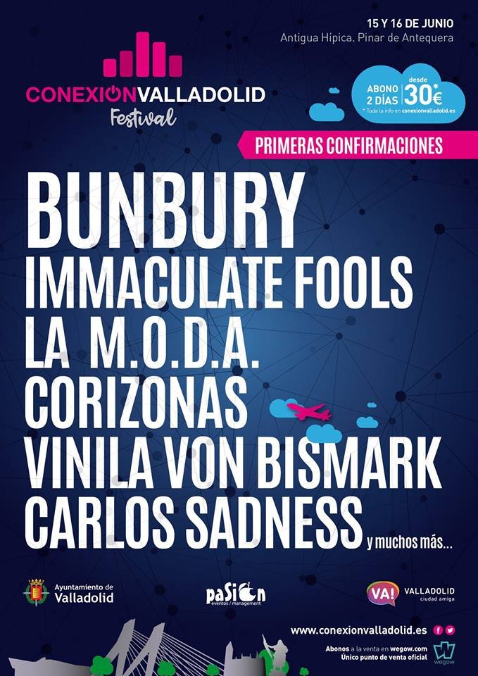 Valladolid acogerá un nuevo festival en los últimos días de la primavera, aprovechando el potencial existente en los terrenos de la Antigua Hípica, situado en el Pinar de la Antequera. De este modo la ciudad tendrá un nuevo evento con el que reforzar su propuesta musical, dando acogida a un conjunto de aristas orientados a diferentes públicos. Esto es lo que podemos deducir a partir de las primeras confirmaciones que han sido desveladas esta mañana. Entre ellas nos encontramos con Bunbury a la cabeza, inmerso en su gira de presentación de su nuevo trabajo Expectativas publicado el año pasado. Con un marcado acento local también estarán presentes Corizonas, la banda formada por la unión de Arizona Baby y los Coronas, recalando para ofrecer un espectáculo de rock de la vieja escuela. El resto de nombres que completan esta primera tanda tiene un gran atractivo juvenil, con grupos como La M.O.D.A. o Carlos Sadness. Os dejamos con el link de oferta de abonos y los primeros nombres.
