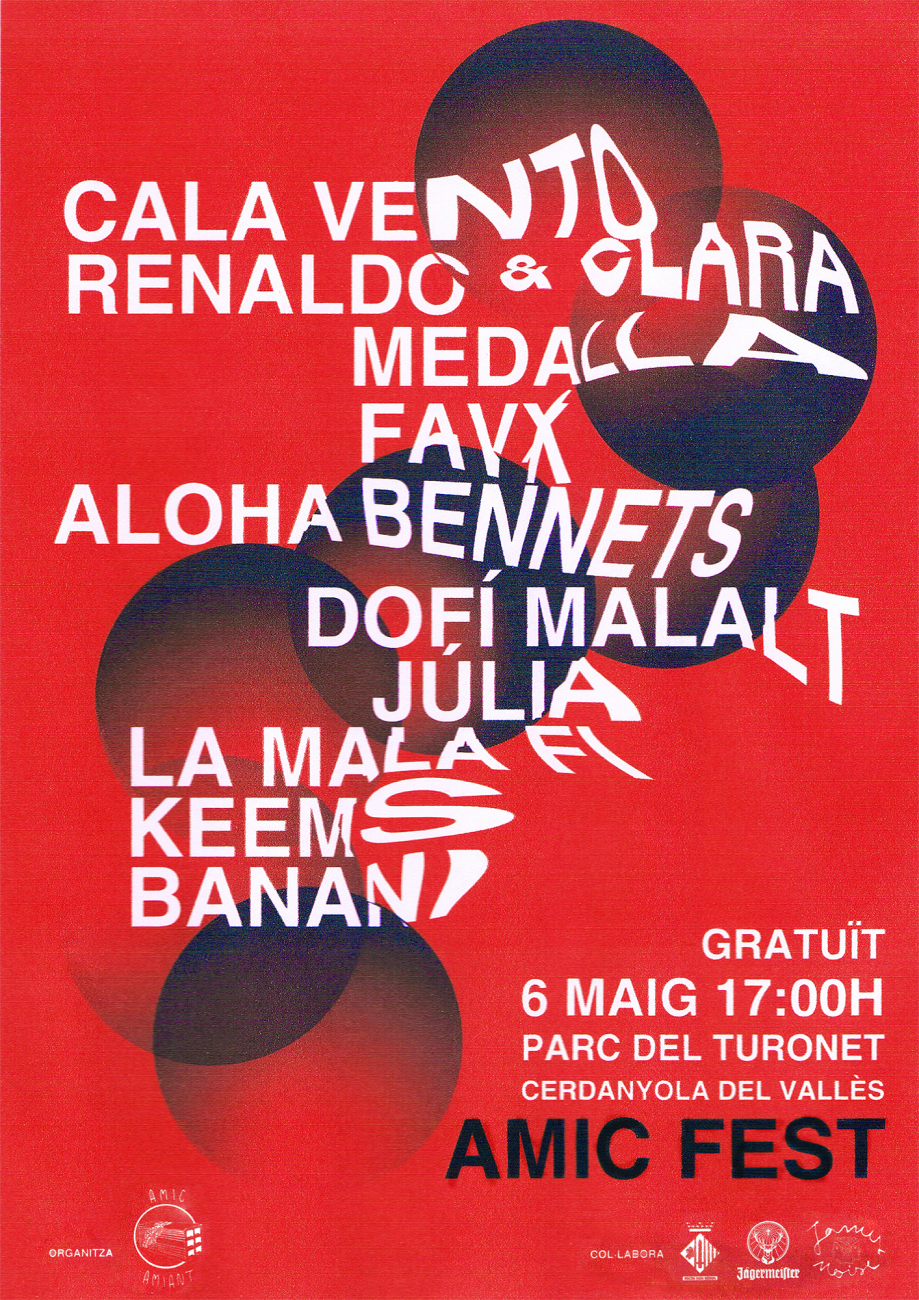 El Amic Fest regresa el 6 de mayo al Parc del Turonet (Cerdanyola del Vallès) para dar buena cuenta de todo el talento de carácter emergente que reside en nuestro país, con especial atención a todo lo que se está desarrollando en los alrededores de Barcelona. Organizado como viene siendo costumbre por la asociación Amic Amiant, el evento gratuito este año volverá a contar con unas líneas muy potentes, juveniles y repletas de un buen gusto por lo melódico. Por ello, si atendemos a los nombres más sonados de este año nos encontraremos indudablemente con Cala Vento, Renaldo & Clara y Medalla, tres bandas que quizás ya les podemos quitar la etiqueta de emergentes en base a todo el éxito cosecha en estos últimos meses. Atendiendo al resto del cartel, nos vamos a encontrar con propuestas de enorme actualidad con nuevo material en el camino como es el caso de Dofí Malalt (para algunos conocido como el Pete Doherty leridano) o el aparataje de rock electrónico de La Mala Fi. Más de esas bandas que hemos oído hablar mucho de ellas últimamente llegan con unos Keems en constante progresión gracias a su EP The Shape of Things to Come donde vuelve a mostrar que sus influencias van mucho más allá de American Football sin dejar pasar tampoco por alto el carácter sintético de Banani. En definitiva, el escaparate perfecto para tomar el pulso a la escena local y algún que otro invitado de lujo como los madrileños FAVX, todo ello al aire libre y esperemos que con buen tiempo. Os dejamos con el cartel al completo y la información relativa a su fiesta de presentación.