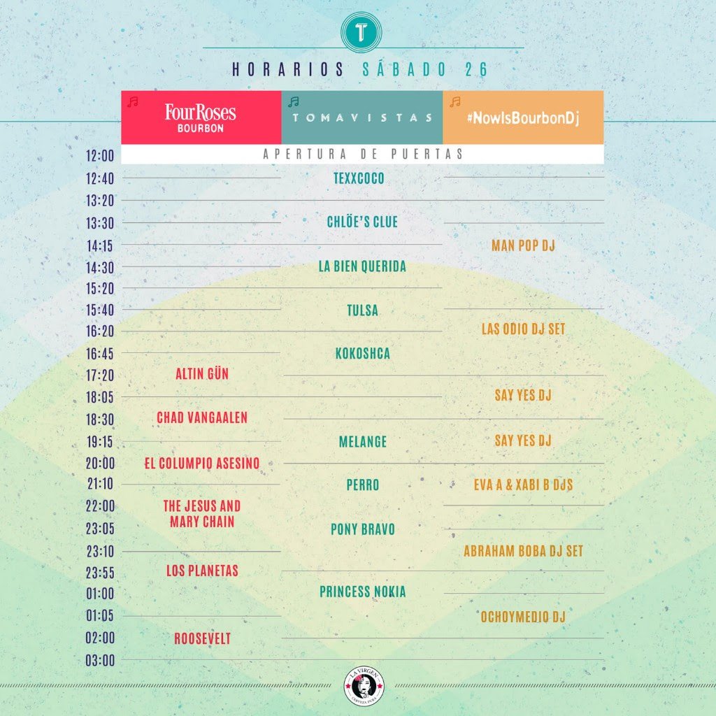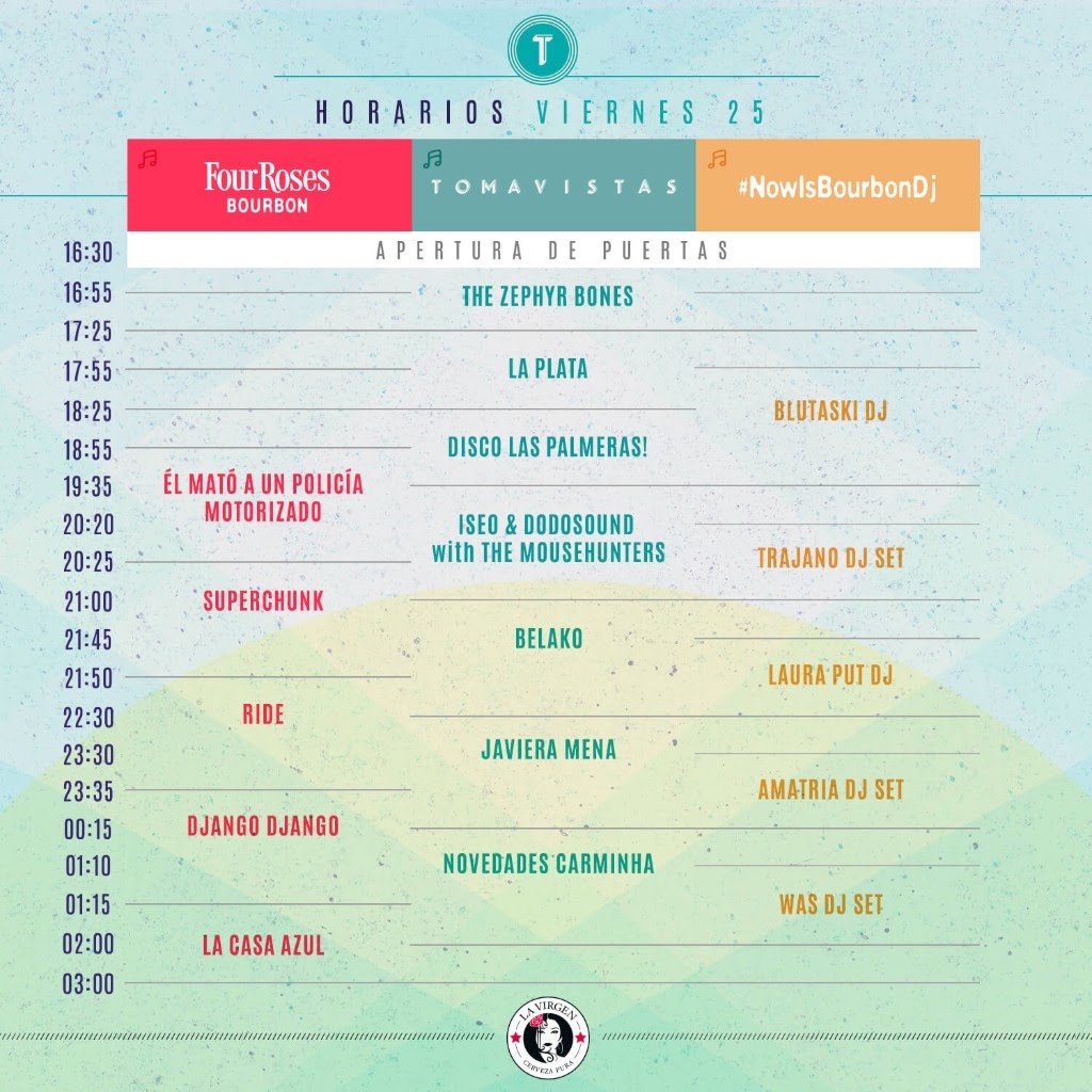 Ya está casi todo listo para que el Tomavistas Festival arranque una nueva edición. A menos de dos semanas de su inicio, la organización ha dado a conocer los horarios de las actuaciones, pudiendo de este modo realizar nuestra planificación de lo que queremos ver cada día. La parte positiva es que los solapes serán totalmente mínimos, como mucho los últimos minutos de finalización de un directo con el inicio del siguiente en un escenario diferente. Esta es otra apuesta más por un modelo de festival cómodo, con buen gusto en la confección del cartel y donde la palabra eclecticismo no tiene ninguna connotación peyorativa. Merece la pena destacar el carácter diurno del evento, ya que el viernes se abrirán las puertas a las 16.30 h., mientras que el sábado lo harán a las 12.00 h., comenzando los directos pocos minutos después. Os dejamos con los horarios al completo y la programación adicional de DJs que caldearán las jornadas festivaleras de forma ininterrumpida.