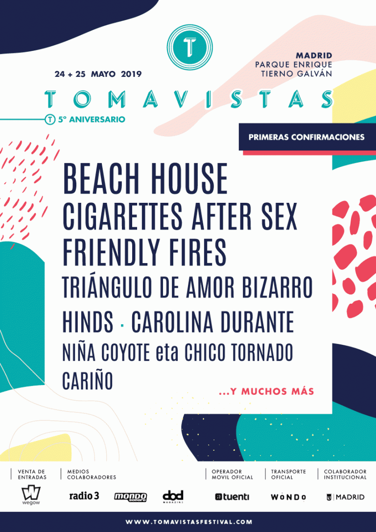 El Tomavistas Festival celebrará su quinto aniversario por todo lo alto en su próxima edición, lanzándose de lleno a lograr el cartel más redondo posible hasta la fecha. Así es como entre los primeros nombres que han desvelado hoy nos hemos encontrado con muy gratas sorpresas, sobre todo debido a la presencia de Beach House en el que será su único concierto en nuestro país en el 2019. La banda de Baltimore publicó este mismo año su nuevo trabajo 7, encontrándonos ante un nuevo giro en su sonido más relacionado con conseguir el ruido perfecto. Junto a ellos también nos llegará también otra de las bandas que más éxitos ha cosechado en estos últimos meses como es el caso de Cigarettes after Sex, intentando convertir el Parque Enrique Tierno Galván en un auténtico oasis donde desarrollar sus composiciones de corte pausado. Si a esto le unimos bandas nacionales de rabiosa actualidad como es el caso de Carolina Durante o Hinds, todo hace indicar que vamos a estar ante la edición más grandiosa del festival. Os dejamos los nombres confirmados hasta al momento junto con el link de venta de abonos.