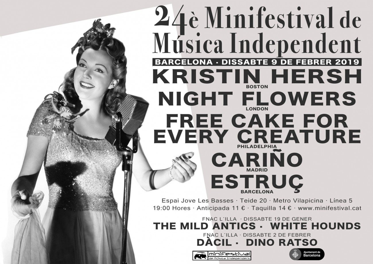 A punto de cumplir un cuarto de siglo, el Minifestival regresa a Barcelona en su vigésima cuarta edición con un cartel plagado de nombres poco obvios que guardan siempre rasgos en común entorno a la canción pop. Estamos por lo tanto ante un evento en el que las bandas no recorren los mil y un festivales clónicos de la península, sino que son seleccionadas con buen gusto y a través de la posibilidad de aportar cosas inusuales. Sin ir más lejos, en esta edición viviremos uno de los primeros conciertos en Europa y por supuesto el primero en nuestro país de Free Cake for Every Creature. El proyecto de Katie Bennett ya cuenta con unos cimientos de lo más sólidos, más aún después de publicar este verano un nuevo LP titulado The Bluest Star, dejándose llevar hacia esa parte a medio camino entre lo acústico y eléctrico de Beat Happening, donde todo lo cotidiano recibe un análisis de lo más emocional. Tampoco podemos pasar por alto la presencia de Night Flowers, la banda londinese de Wild Notion, un trabajo donde el espíritu del twee pop se entremezcla con esa faceta por momentos shoegaze que lejos de apuntar a las sombras apunta al optimismo. No menos importante resultará la presencia de Kristin Hersh, la que fuese líder de Throwing Muses y que en solitario ha sabido muy bien cómo desarrollar un trabajo de clara influencia folk. Completando el cartel se encuentran dos de las bandas nacionales con más actividad a largo de este 2018 como es el caso de Estruç y Cariño. Por lo tanto estamos ante una nueva puesta a punto de unos ideales entorno a la música de calidad que siempre hay que valorar. Os dejamos con todos los detalles de esta próxima edición del festival barcelonés.
