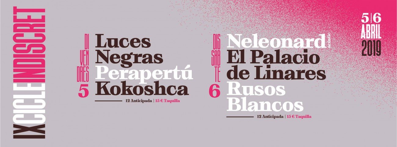El Cicle Indiscret nos tiene muy bien acostumbrados a las sorpresas agradables. Centrando siempre el foco en la actualidad más excitante, a lo largo de diferentes fines de semana del año, nos encontramos con una propuesta de primer nivel en Barcelona, girando casi siempre entorno a las melodías más pop. Los carteles siempre logrados por la organización resultan de lo más atractivos, pero el que se han sacado de la manga esta vez quizás destaca más que nunca. Los motivos para realizar esta afirmación son varios. Por un lado El Palacio de Linares ofrecerá uno de sus primeros conciertos presentando Largos Agotadores, su reciente y flamante trabajo donde vuelven a poner de manifiesto los sentimientos más comunes contados como solo son muy poco capaces de hacerlo. Más detalles importantes llegan de la mano del regreso de Kokoshca a Barcelona, también con nuevo disco como es El Mal. Sin perder de vista a las propuestas más jóvenes, nos encontramos con la nueva banda a seguir en la ciudad como son Las Luces Negras y su propuesta de pop claramente oscura y atractiva. Tampoco podemos pasar por alto otro regreso de renombre como es el caso de Rusos Blancos, una de esas bandas infalibles a la hora de describir situaciones amorosas como nadie. Os dejamos con el link de venta de entradas y el cartel completo de esta nueva edición.