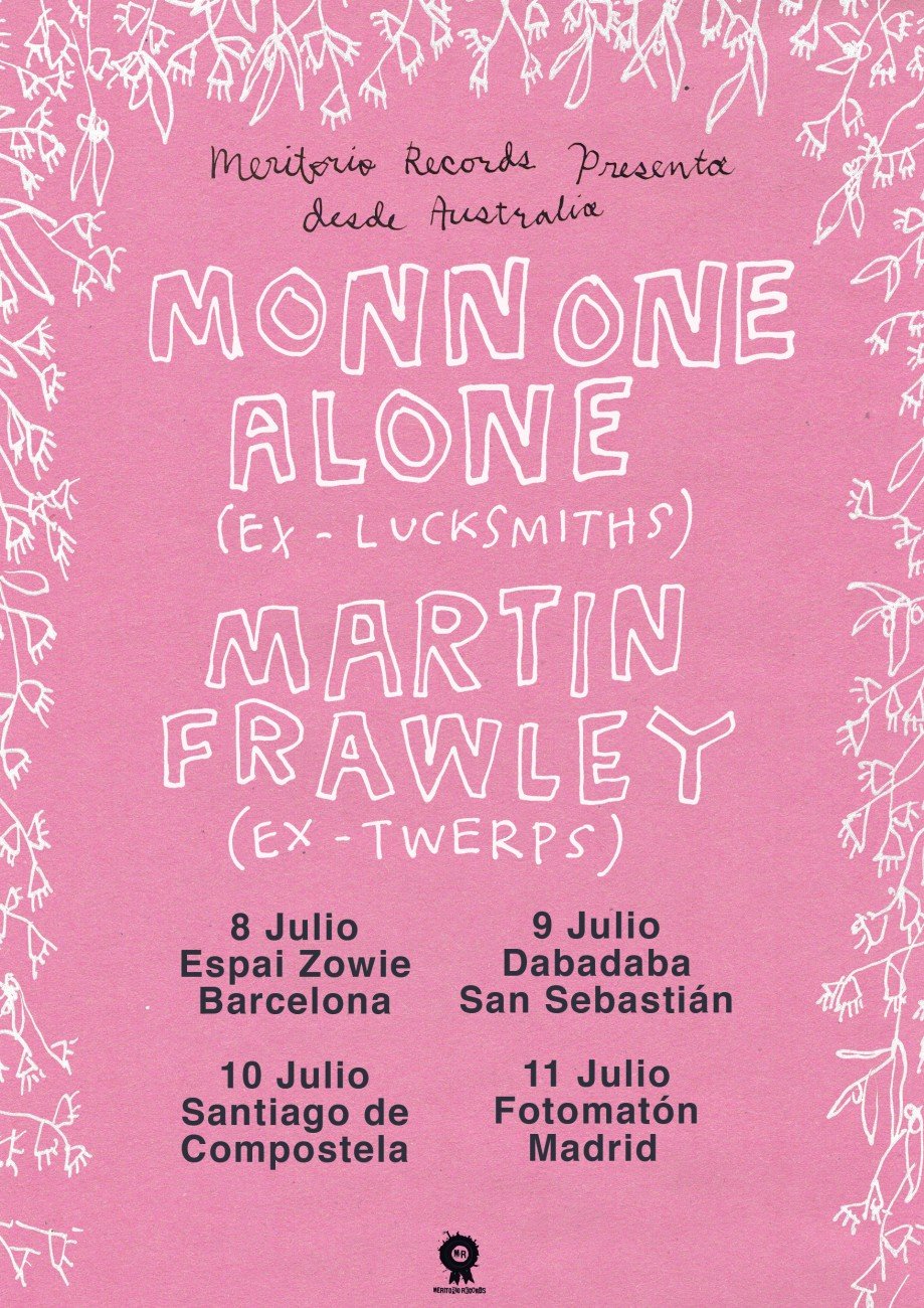 Acompañando en esta gira española a Monnone Alone, no faltará otro talentoso australiano como es Martin Frawley. Con Twerps en un pronunciado stand by, el músico publicó este mismo año su debut en solitario titulado Undone at 31, reflejando sus inquietudes entorno a un cierto núcleo más acústico donde el jangle pop se mantiene perfectamente latente. Con reflexiones vitales donde abunda la ironía y un gran desparpajo para mostrarnos historias curiosas, el disco nos muestra también múltiples caras relacionadas con encontrar un lado más descarado e incluso propio de garito humeante, demostrando una vez más como puede moverse entre ambientes totalmente relajados y otros mucho más incendiarios. Con nuestra recomendación de no perderos esta gira, os dejamos con las fechas.
