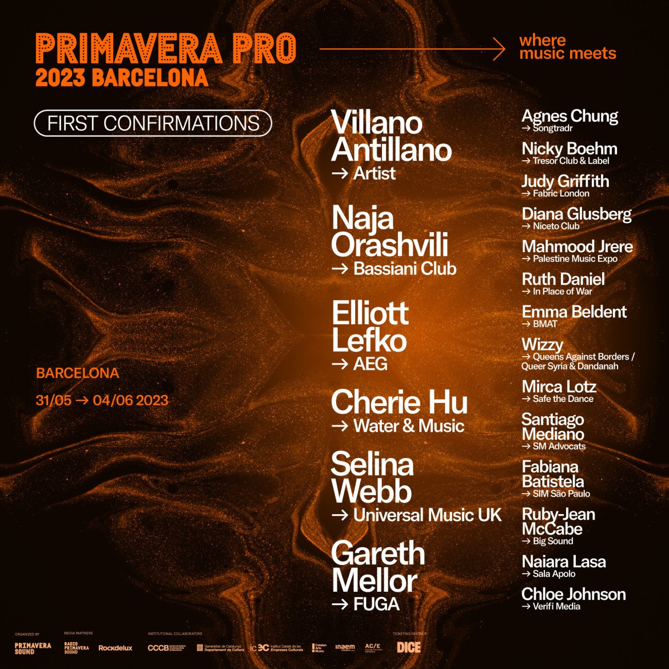 Por último, las últimas personalidades relevantes confirmadas hasta al momento llega con Nicky Boehm (Tresor Club & Label), Judy Griffith (Fabric London), Naiara Lasa (Sala Apolo) y Mirca Lotz (Safe the Dance) explicando cómo es posible lograr que las fiestas sean seguras, teniendo una vez más como único centro de atención la música (electrónica o no) y las ganas de pasarlo bien.