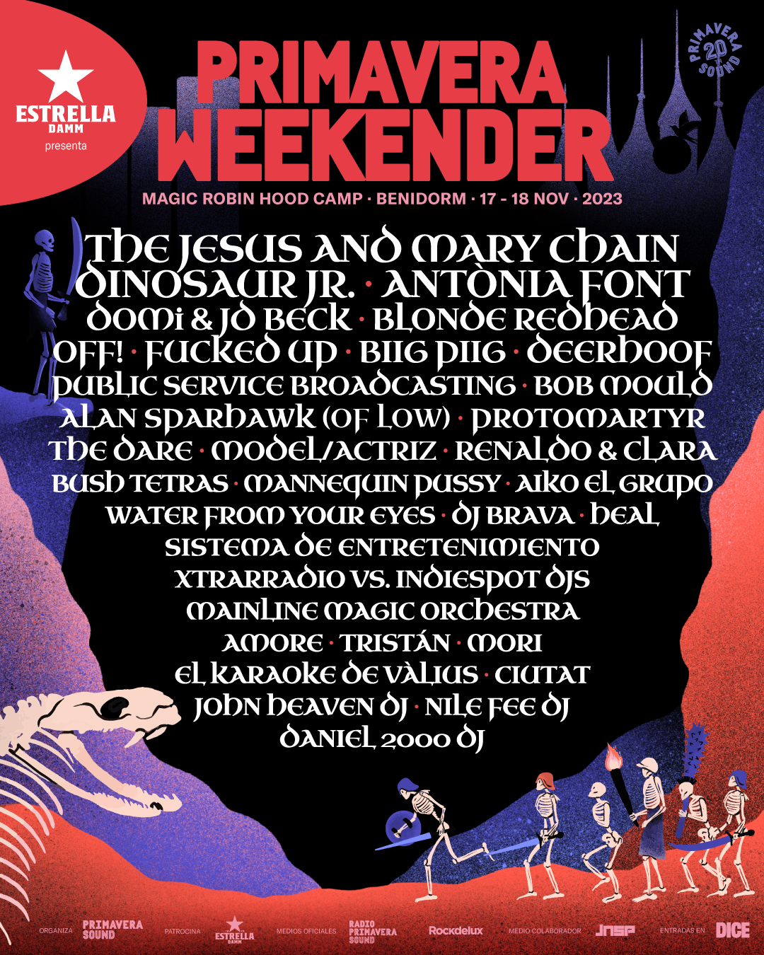 Primavera Weekender es como una versión más pequeña e íntima de los festivales Primavera Sound, como una reunión familiar acogedora en lugar de una gran fiesta en la calle. Es como un paraíso para amantes de la música, con un cartel que incluye a The Jesus and Mary Chain, Dinosaur Jr., Antònia Font, DOMi & JD Beck, Biig Piig, Deerhoof y Blonde Redhead. El festival es como una celebración de una gran y feliz familia, compuesta por los organizadores del festival, el público y los artistas, todos unidos para compartir su amor por la música. Es como un paquete completo, con entradas que incluyen acceso a los conciertos, pensión completa durante el fin de semana y alojamiento por dos noches en bungalows para grupos de dos a seis personas. El festival es como un tesoro de descubrimientos musicales, con una mezcla de artistas consolidados y emergentes de una variedad de géneros, esperando ser descubiertos por los asistentes. Es como una casa de espectáculos, presentada por Mainline Magic Orchestra, donde invitan a sus amigos a venir y unirse a la diversión. Elfestival es como un viaje musical, proporcionando una experiencia única para que los asistentes se conecten con artistas y otros fans, y descubran nueva música en el camino.