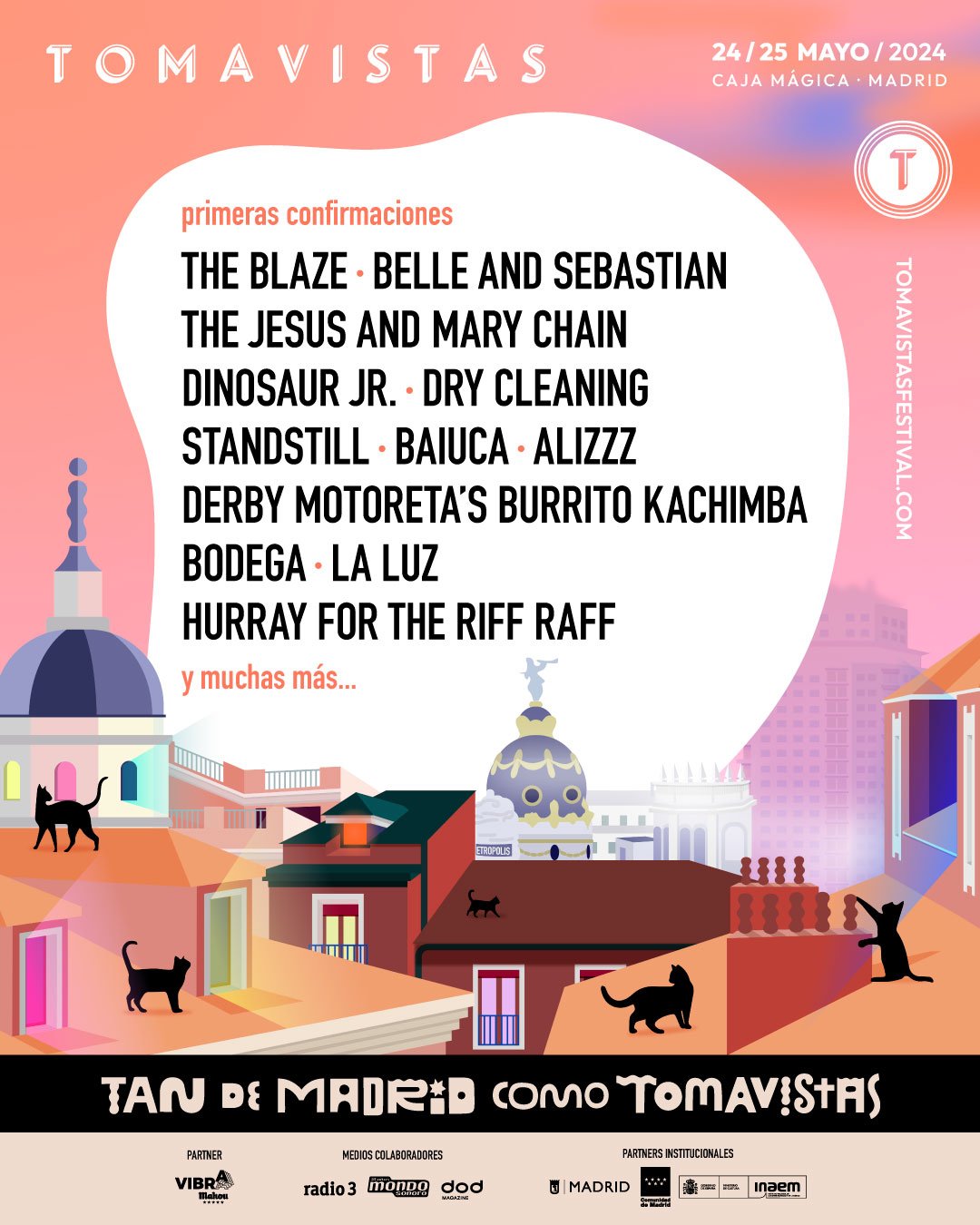 En esta primera tanda de confirmaciones destaca la presencia del dúo electrónico francés The Blaze, que visita España por primera vez para mostrar su álbum Jungle y su propuesta audiovisual envolvente. También actuarán los legendarios escoceses Belle and Sebastian, que cumplen 30 años de carrera y traen sus últimos trabajos, en una celebración de su extenso repertorio. Otra banda veterana, The Jesus and Mary Chain, con 40 años a sus espaldas, ofrecerá en primicia temas de su próximo álbum Glasgow Eyes, en lo que será su segunda vez en Tomavistas.