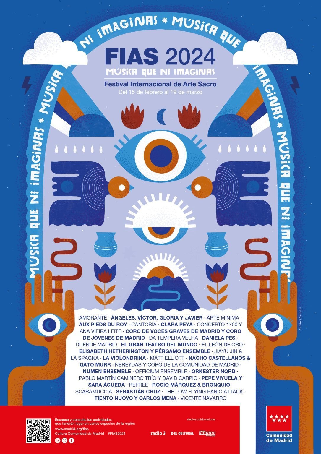 La 34a edición del Festival Internacional de Arte Sacro (FIAS) tendrá lugar en Madrid del 15 de febrero al 19 de marzo con una amplia programación repartida por distintos espacios de la ciudad. El festival apuesta un año más por el talento nacional, con 31 estrenos y 6 encargos, alternando estilos y consagrados con figuras emergentes. Contará con formaciones de jazz, folk, flamenco, pop, electrónica y música antigua, con gran presencia de artistas portugueses. Destacan el grupo barroco El Gran Teatro del Mundo en el concierto inaugural y las formaciones Arte Minima y Officium Ensemble recuperando el patrimonio musical luso. Regresan Cantoría, El León de Oro y Pérgamo Ensemble, entre otros. Se estrena el disco de Pablo Martín Caminero Trío junto al cantaor David Carpio y Sebastián Cruz con su proyecto 'Zarabanda'. Rocío Márquez & Bronquio presentan 'Tercer cielo' y Refree, Clara Peya o Vicente Navarro figuran en el cartel. Actuarán en espacios como la Basílica de San Miguel, Teatros del Canal o el Palacio Real.
