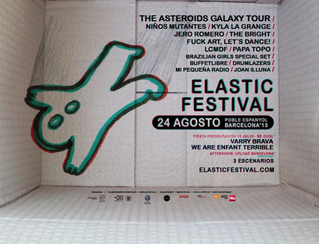 La semana pasada te presentábamos este nuevo festival, el Elastic Festival, que tendrá lugar el próximo sábado 24 de Agosto en el recinto del Poble Espanyol de Barcelona. Festival muy variado, con numerosos artistas del panorama nacional e internacional, y que contará con 3 escenarios a su disposición. Entre sus muchos artistas contaremos con La Habitación Roja, último grupo desvelado, Izal, L.A., Papa Topo, y grupos llegados de fuera de nuestras fronteras como The Asteroids Galaxy Tour, Brazilian Girls o We Are Enfant Terrible. Aquí podrás recordar todos los nombres que participarán.