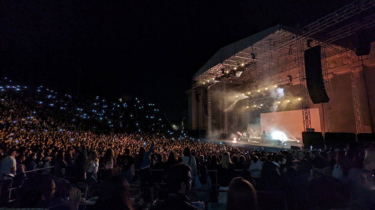 Legrand y Scally se mostraron en todo momento muy comunicativos con el público, quien a su vez se notaba estaba allí para disfrutar al máximo de los de Baltimore. Pasa a veces en grandes ciudades y grandes conciertos que parte de los asistentes han ido allí a pasarlo bien sin importarle el artista, hablando de sus cosas y bebiendo, pero en esta ocasión la adoración de todos los allí presentes era palpable, una sensación muy agradable y emocionante que creó una atmósfera de lo más conmovedora. Entre canción y canción los músicos interactuaron con su público hablando del precioso paisaje del Greek Theater, de lo contentos que estaban de estar allí, e incluso haciendo reflexiones como cuando Legrand comentó: "A veces tienes este sentimiento cuando te preguntas '¿Cuánto tiempo más puedo hacer esto?' Queremos seguir haciendo esto hasta que llegue ese día".