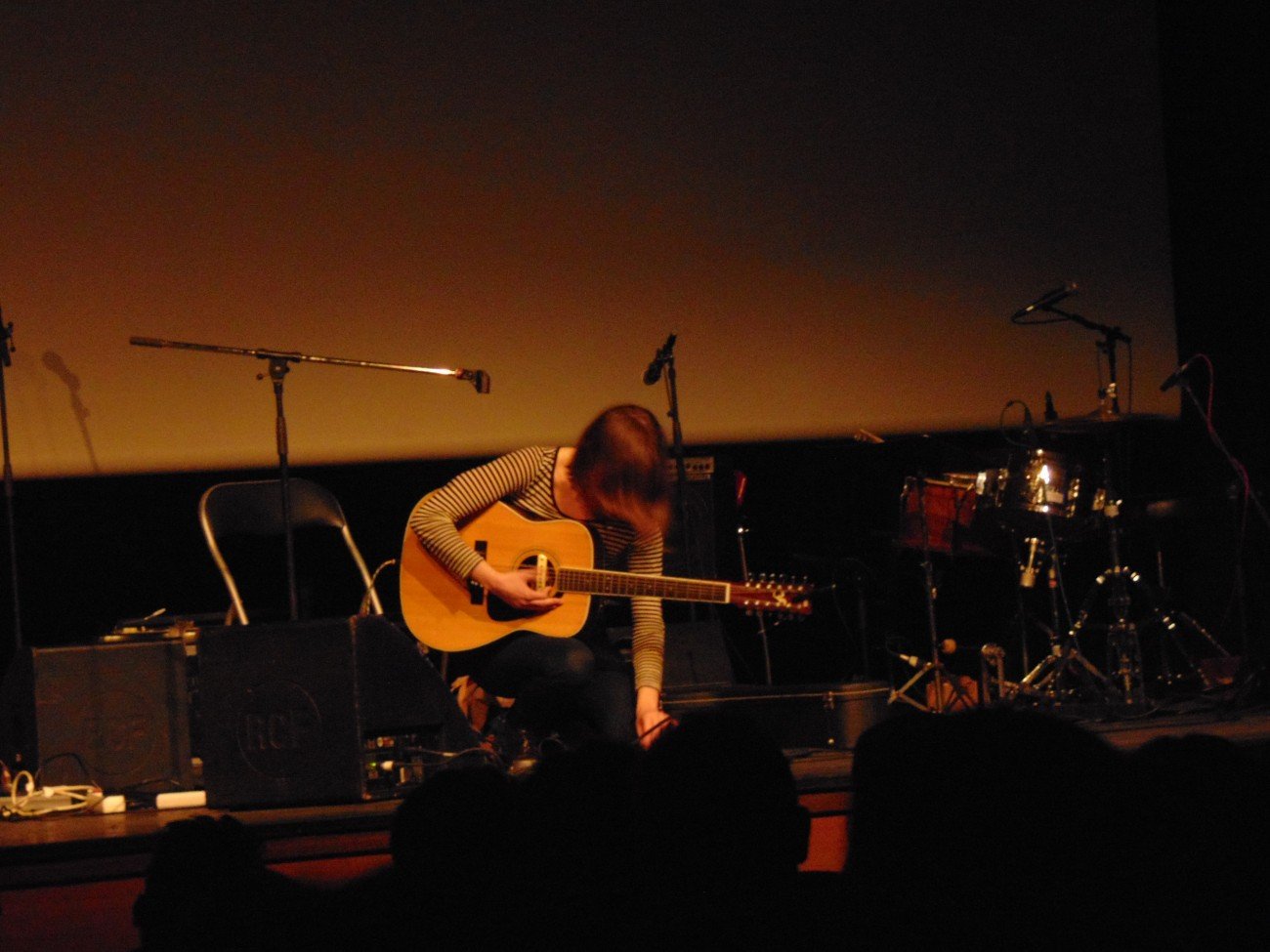 Circuit Des Yeux, también conocida como Haley Fohr, abrió el concierto con puntualidad. Estuvo prácticamente sola ante al peligro; únicamente contaba con su guitarra acústica y un buen número de pedales que modificaban el sonido de su instrumento, convirtiéndolo en una guitarra eléctrica cuando convenía. En otras ocasiones, Haley dejaba su voz desnuda junto a los sencillos arpegios de guitarra y llenaba el teatro con ese sonido grave y profundo que salía de su garganta. Sus mejores momentos llegaron cuando se puso más PJ Harvey, entre largos aullidos y la distorsión de su guitarra. Aunque ella estuvo bien, su actuación fue entorpecida por la continua llegada de gente al teatro y la mala educación de algunos de los asistentes, que puede que desconozcan que no es obligatorio ir a ver al telonero.