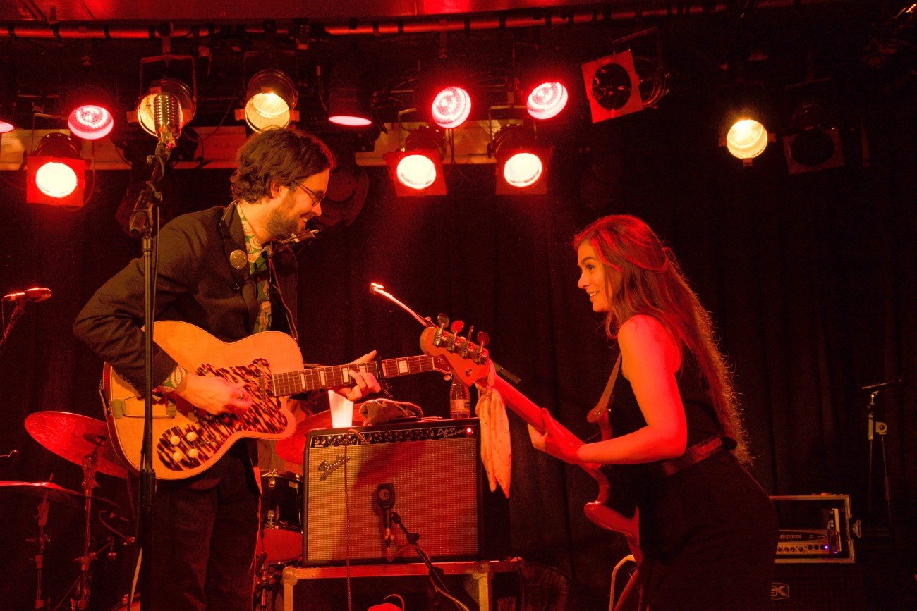 Esta noche se sumaba a su habitual banda la multi instrumentista Vera Sola, otra habitual de su círculo, que solo unos minutos antes acababa de actuar en la misma sala.