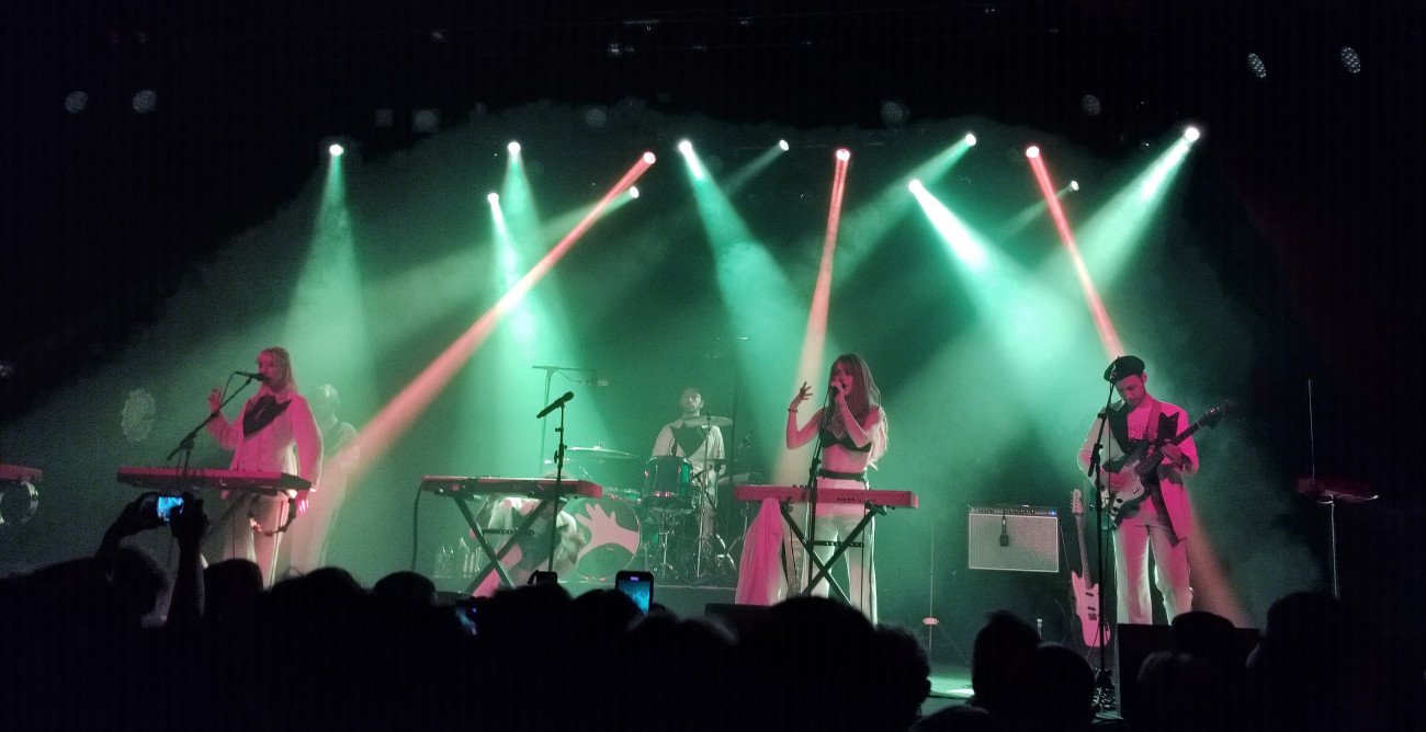 Tan solo bastaron los primeros acordes de ‘Nouvelle-Orléans’ para que la marea humana se apretujase aún más entre las primeras filas y así celebrar al máximo el cántico a la eterna juventud que siempre propugna la banda. Dejándonos impresionados a las primeras de cambio con como las líneas sintéticas se entrelazaban y las voces de Ysé Grospiron y Marlon Magnée ofrecían la dulzura perfecta a los temas, dio comienzo un auténtico despliegue de intensidad bien medida. Logrando que el concierto en todo momento mantuviese unas cotas de excitación bastante altas, tan solo bastaban algunas notas para festejar al máximo temas como ‘Cool Colorado’ o incluso una ‘Le sang de mon prochain’ que a pesar de mantenerse en todo momento a ralentí nos cautivó a base de explotar al máximo sus graves. Cada uno de los temas que iban desgranando siempre poseía un gancho perfecto con el que hacer saltar todo por los aires, independientemente de cuales fuesen sus revoluciones.