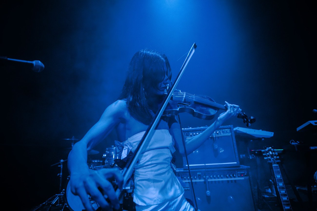 Si bien en Madrid tuvo el hándicap de ofrecer un formato en el que la mayoría de lo que sonaba en directo estaba pregrabado, logró desde el inicio del directo cautivarnos a partir de ese enfoque puramente romántico que tiene su música. Demostrándolo desde los compases iniciales con temas tan candentes como ‘Schweden Espresso’ o bien en esos arrebatos de pista de baile ochentera de ‘Klein‐Marx’, donde cerró con un solo de violín, al final su directo nos supo a poco, aunque sí que cayeron piezas de atmósferas totalmente vaporosas como ‘Baker Miller Pink’ a las que es imposible no caer rendido.