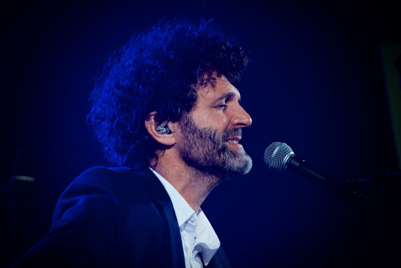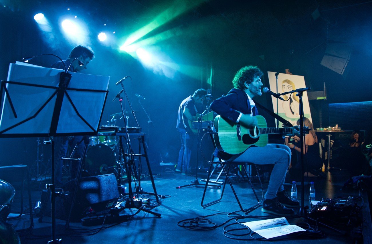 ‘Azul cabeza abajo’ descorchó el repertorio, enriquecido a mano derecha por un joven trío de cuerdas que almibaraban las líneas de Miguel Rivera; un recurso que sacó brillo a muchos minutos de la velada aunque en ocasiones su presencia quedara reducido a su aspecto visual. En el otro extremo del escenario, la artista María Hesse iba creando un lienzo in situ inspirado en la música de los sevillanos; una mise en scene que los acompañó a lo largo de toda su actuación y que posteriormente se subastaría para recaudar fondos para las personas refugiadas.