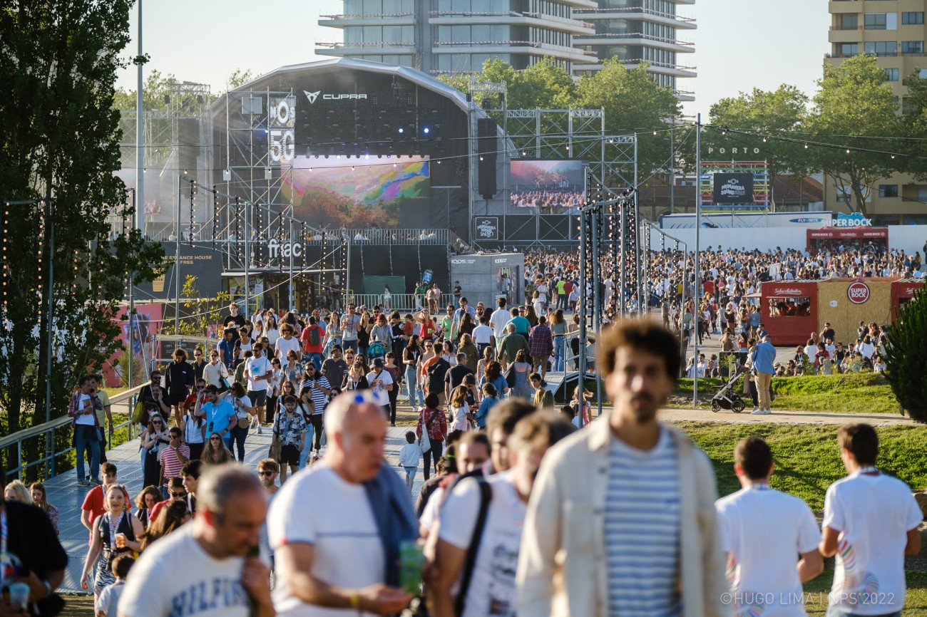 Adentrándonos en las últimas actuaciones de la noche, 100 gecs llegaban al escenario Super Bock con una propuesta realmente impactante en cuanto a todo lo vibrante de sus graves, la saturación de voces llevada al límite y ese carisma tan arrollador con el que evidenciar como a pesar de que su música no sea en directo su entrega es total. Nada más salir al escenario con ‘Hey Big Man’ lograron que los primeros asistentes volasen en brazos del resto de los presentes, todo ello acrecentado por un cúmulo de proyecciones disparatadas donde veíamos pasar auténticas estampas desquiciadas a una velocidad sobrehumana. Desvistiéndose rápidamente de sus característicos trajes de magos, dieron rienda suelta en los primeros compases del directo a composiciones tan rotundas como ‘Doritos & Fritos’ o ‘757’, exhibiendo todas las posibles caras de su música que van desde el hyper pop hasta a un noise rock siempre hipervitaminado. Resultando increíble como la intensidad del directo no decrecía en ningún momento, nos encontramos ante momentos de esos donde parecía que éramos más conscientes que nunca la auténtica religión que supone el grupo para sus seguidores, entregados en masa a todo el surrealismo que contienen sus temas. Incluso temas más recientes como ‘mememe’ eran vividos a nuestro alrededor con una pasión desmesurada, dando buena cuenta de como la popularidad del grupo es imparable.