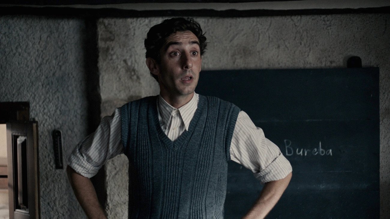 En la línea temporal del pasado, ambientada en los convulsos meses previos al estallido de la Guerra Civil, el actor Enric Auquer compone con extrema sensibilidad el personaje de Antoni Benaiges, un joven maestro catalán destinado a una pequeña escuela en el pueblo burgalés de Bañuelos de Bureba. Allí este idealista educador implantó un innovador método de enseñanza llamado Freinet, consistente en que los propios alumnos confeccionaran sus materiales de aprendizaje mediante una imprenta, fomentando así su creatividad y autonomía. Auquer transmite con su mirada emocionada y sus vibrantes diálogos la pasión de Benaiges por inspirar a sus alumnos, en abierto choque con la rígida visión del cura y las familias del pueblo.